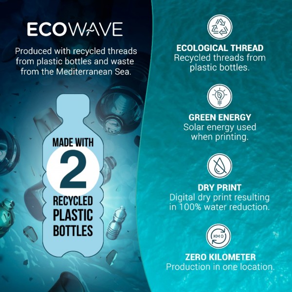 ECOWAVE: Produced with recycled yarns from plastic bottles and waste from the Mediterranean Sea