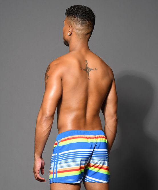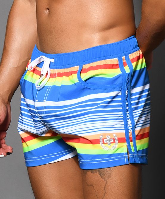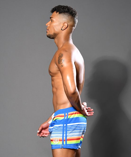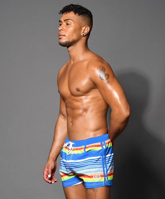 Throwback to the days of skimpy little swimsuits and bright rainbow colors. The fun new Retro Stripe Swim Shorts has it all. Each pair features our signature slimming waistband, this time in soft elastic with a contrast drawstring! Hit the beach or just chill by the pool in these cute new shorts!